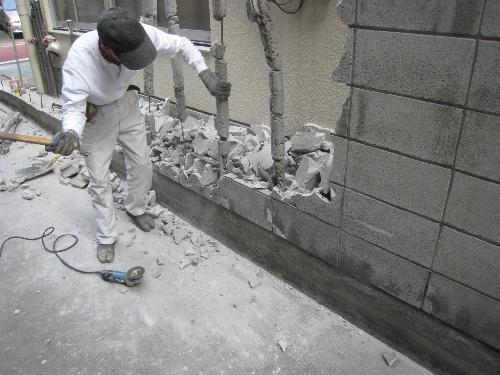 既存ブロックを解体し、新しいブロックを1段積み、TOEXのハイグリッドフェンスを取付ました。