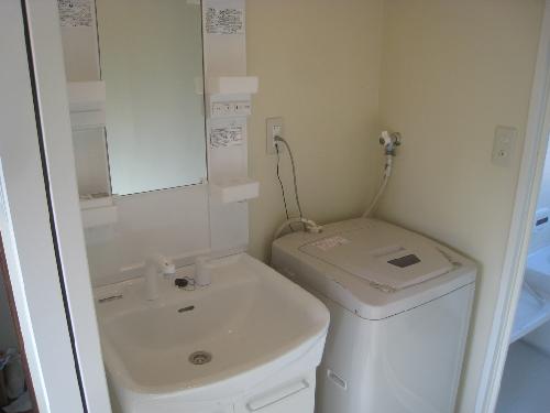 洗面化粧台と洗濯機パンを設置して完了。