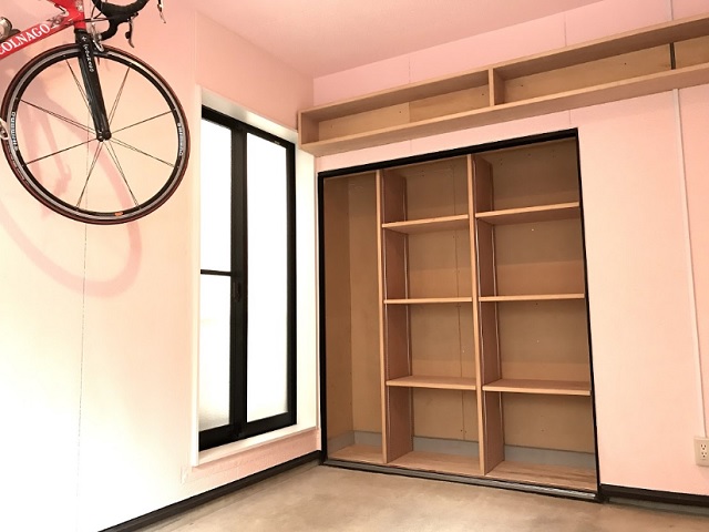 また既存の物入れを利用し可動棚を造作しました。
